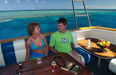 Stateroom is a double bed only, suitable for 2 passengers, singles are required to pay sole occupancy. Due to light aircraft weight restrictions, your total luggage weight is limited to 20 kilograms/ 45 lb per person. A Marine Park entry fee and Port Fee is payable on board.