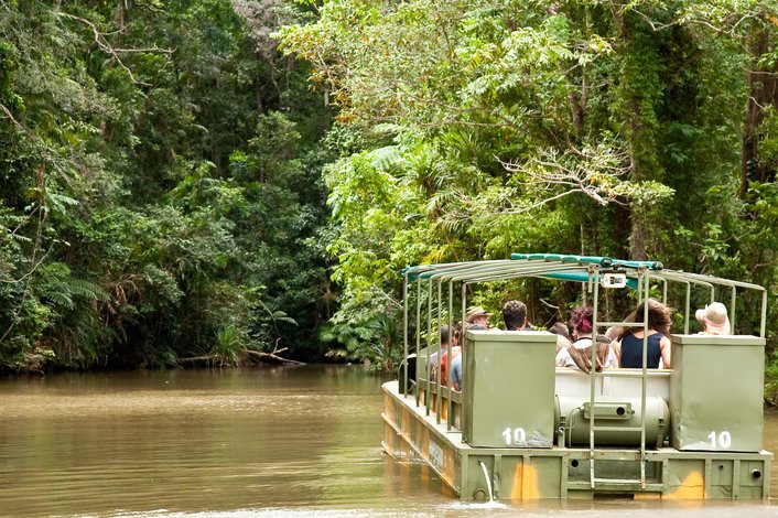 The award-winning Rainforestation Nature Park, where you can take a tour on a historic World War II Army Duck over land and through water. Join a guided tour and see crocodiles, koalas, snakes, dingoes, a cassowary and the only Tasmanian Devils in North Queensland. Handfeed kangaroos and wallabies.