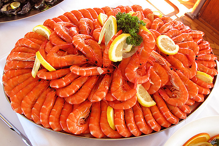(GF) Fresh tiger prawns served with Thousand Island dressing and fresh lemon wedges