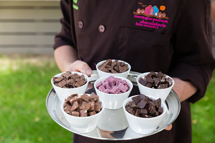 Complete your experience with a visit to the Mornington Peninsula Chocolaterie to indulge in a tasting of their delicious hand-crafted chocolates. During the summer months (Nov-March) guests have the option of visiting Sunny Ridge Strawberry Farm, where you can try your hand at strawberry picking (subject to fruit availability). **Guests who choose the strawberry picking option will not visit the Mornington Peninsula Chocolaterie.